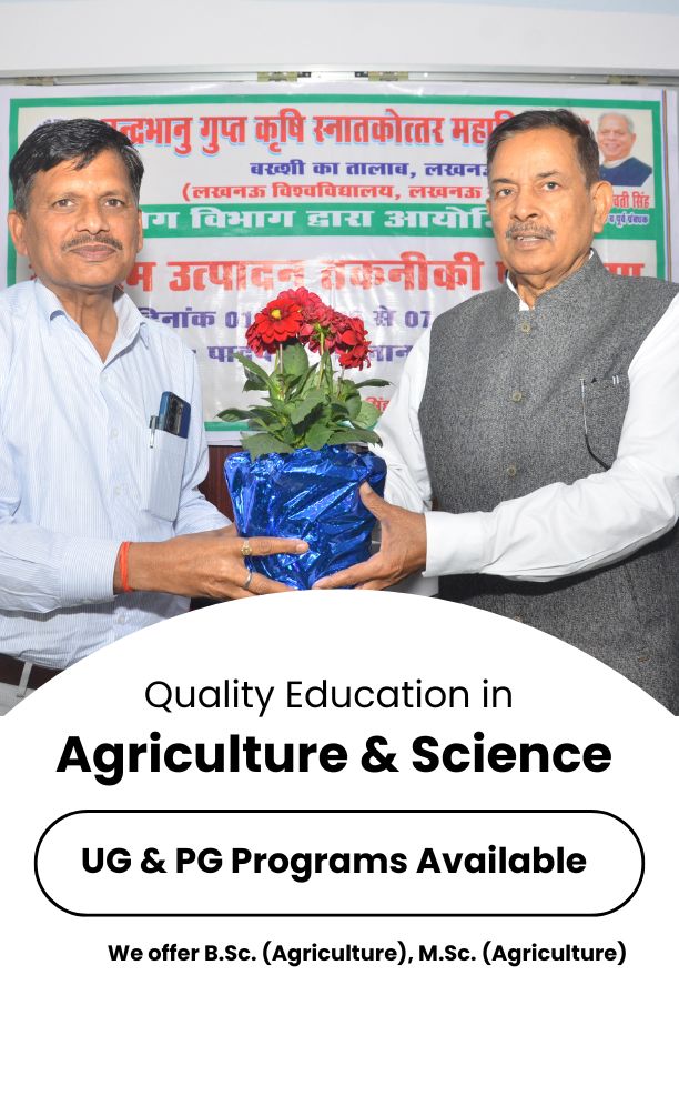 Chandra Bhanu Gupta Agriculture Post Graduate College was established in 1995 at Bakshi Ka Talab, Lucknow, Uttar Pradesh , on National Highway No.24 from Lucknow to New Delhi. In view of need of agrarians of the region, the office bearers of Siksha Samiti for social service, this institutions was established in the honour of Late Chandra Bhanu Gupta, Former Chief minister of UP, in his memory under the dynamic leadership and Founder Manager, Honorable Shri Bhagavati Singh, former Cabinet Minister, Govt of UP and Ex Member of Rajya Sabha. Sh Singh continued to be its Manager and remained guidance force for its development till 2021.